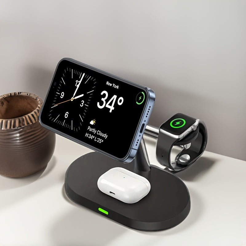 - 3-in-1 Magnetic Charging: Wirelessly charge your iPhone, Apple Watch, and AirPods – all at the same time.